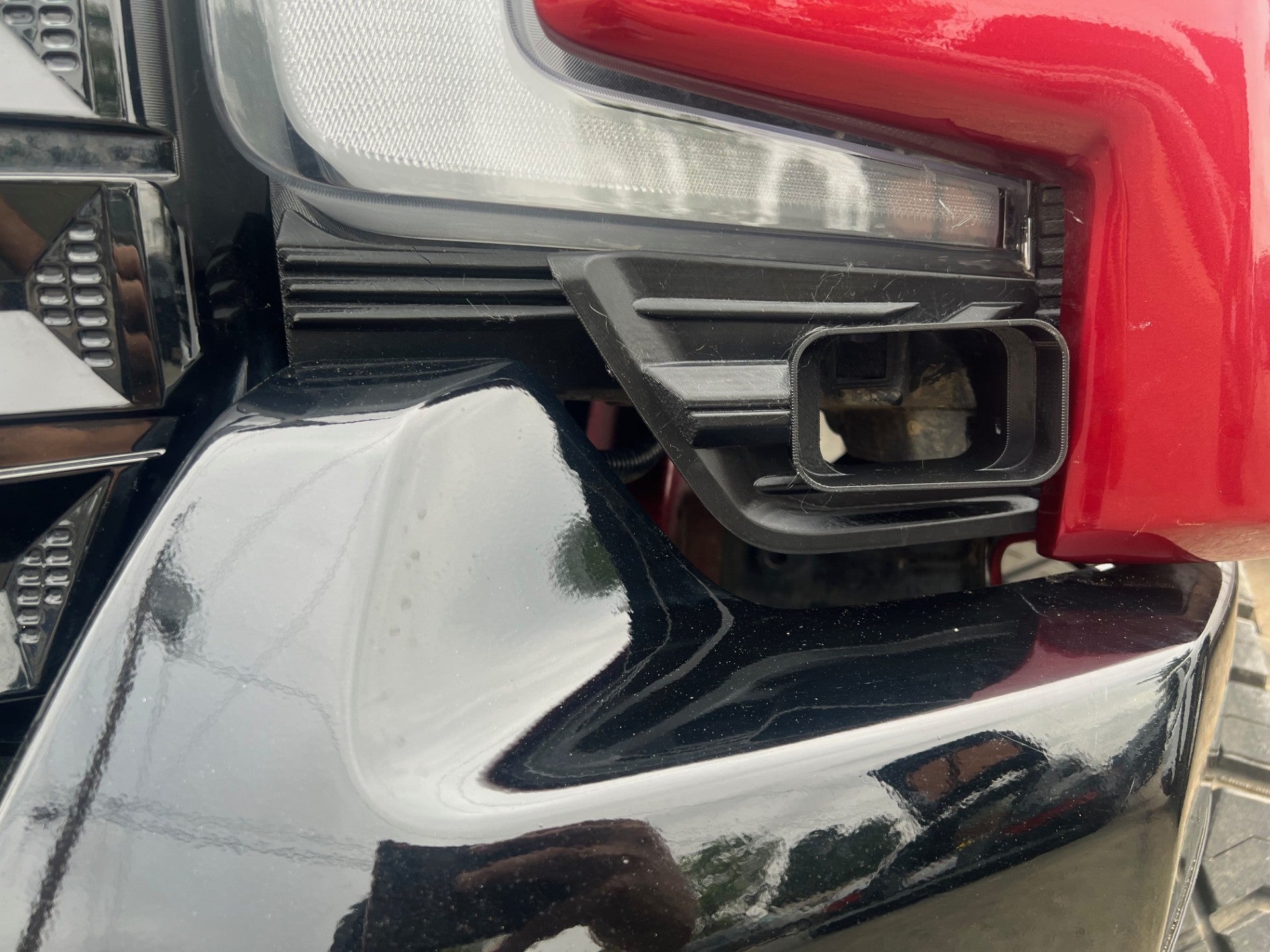 Enhance visibility for off-road adventures with the +2022 Silverado ZR2 Baja Designs S2 Led vent cover. Designed to seamlessly fit OEM style fog lights, this cover is made via 3D printing using ASA. Safely install aftermarket LEDs without compromising the vehicle's design. Increase safety and maintain OEM quality with this vent cover.