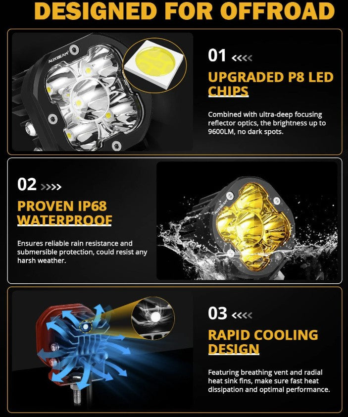 - Auxbeam XP Ultra Spot 9600 LM 3 inch 80W Led Pod