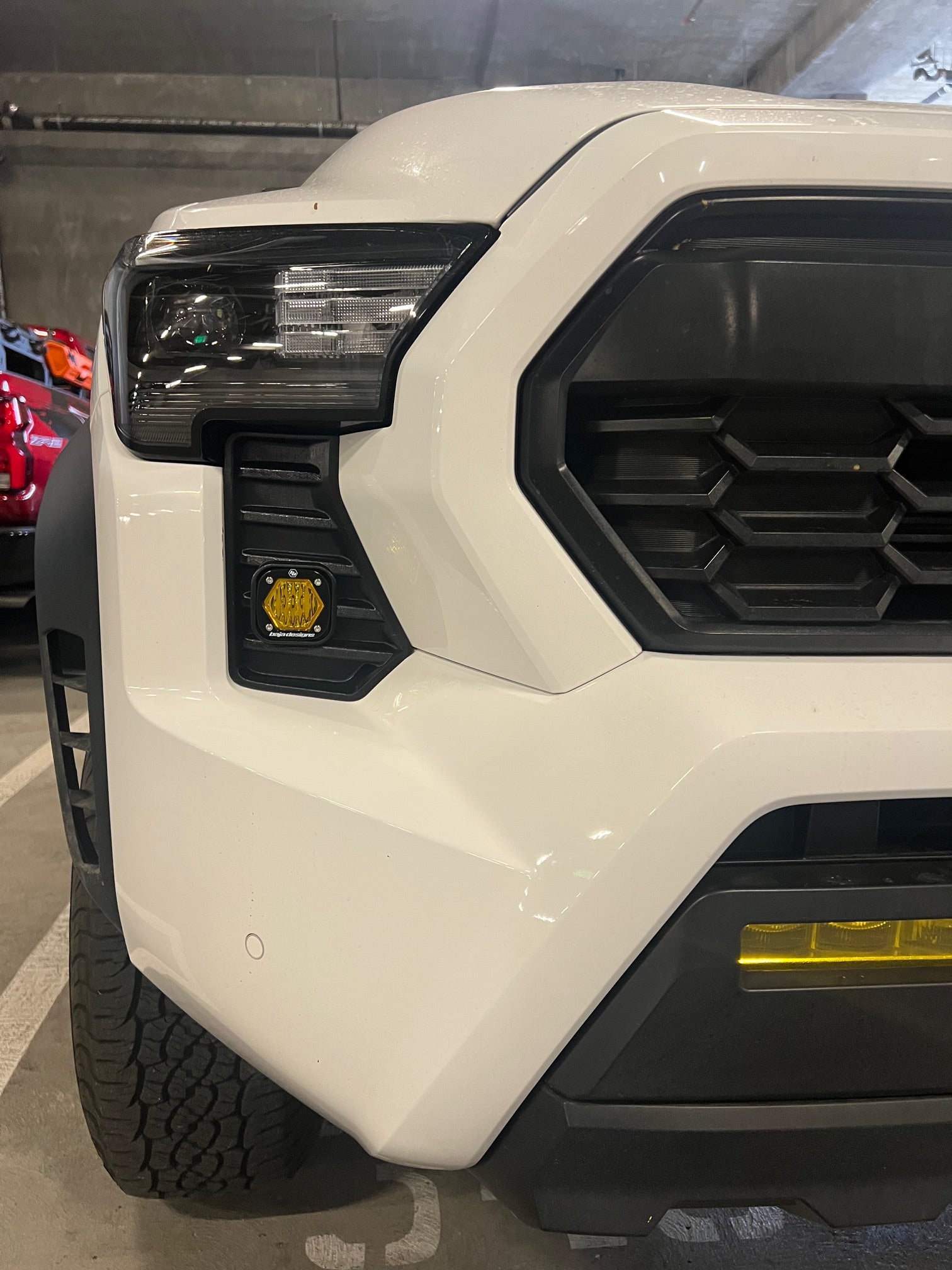 Enhance visibility for off-road adventures with the +2024 Tacoma S1 Led vent cover. Designed to seamlessly fit OEM style fog lights, this cover is made of durable ABS plastic using injection molding. Safely install aftermarket LEDs without compromising the vehicle's design. Increase safety and maintain OEM quality with this vent cover.